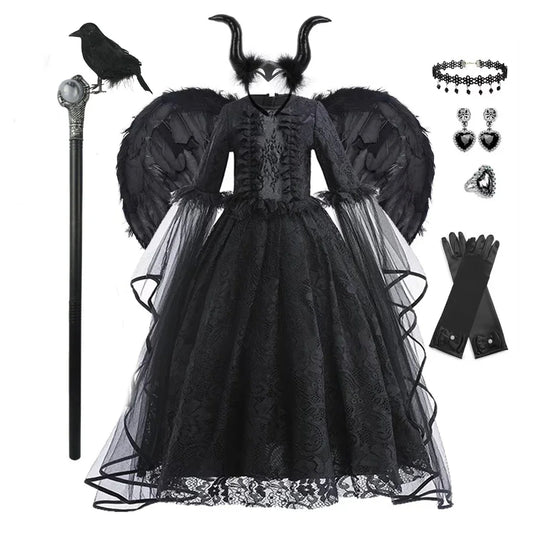 Black Witch Dress Maleficent Halloween Costume Dress Ghost Bride Dress Up Outfit Costume For Kids