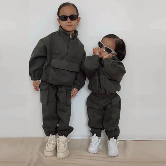 Baby Boys Girls Fleece Sweatsuit – 2pcs Pullover & Pants Outfit