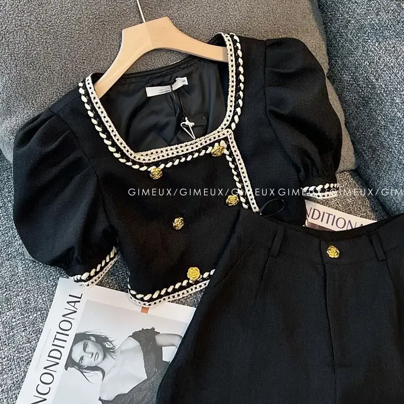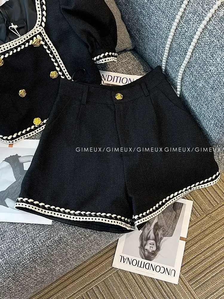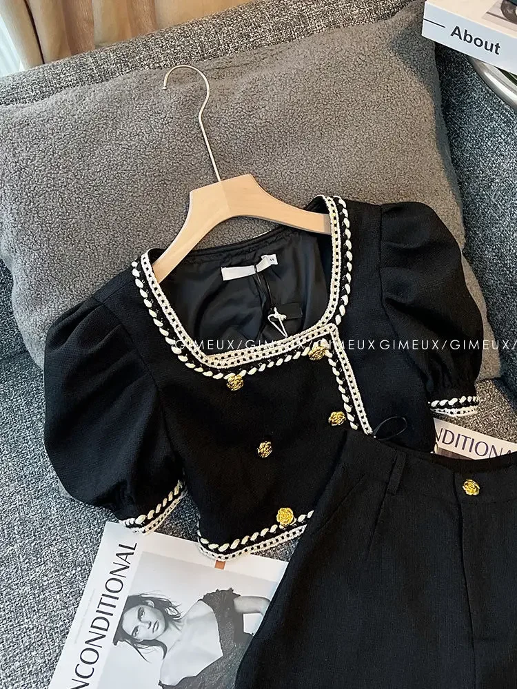 Meet the perfect two-piece set for your little fashionista! This adorable outfit features a chic double-breasted top with charming puffed sleeves that add a touch of vintage-inspired style. Paired with comfortable shorts, it's an effortless way to keep her looking polished and put-together. Whether she's heading to school, playdates, or family gatherings, this set delivers both style and comfort in one delightful package. A wardrobe essential that'll have her feeling like the star she is!