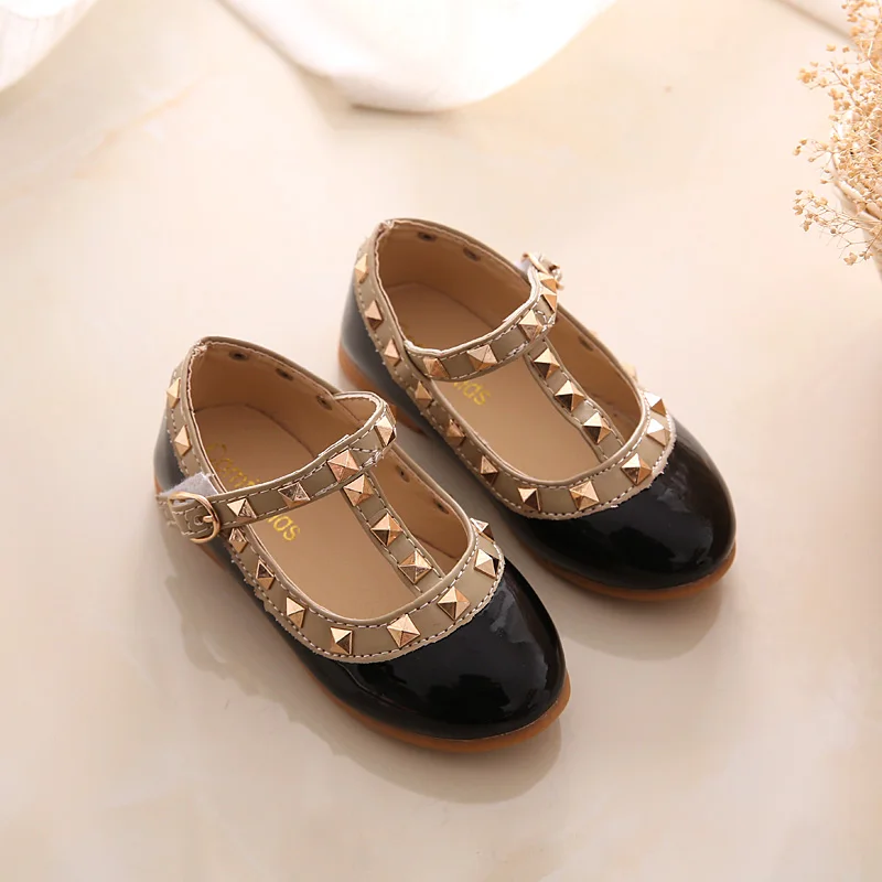 KIDS Autumn girls brand for baby stud shoes children nude sandal toddler summer shoe black white flats party shoe