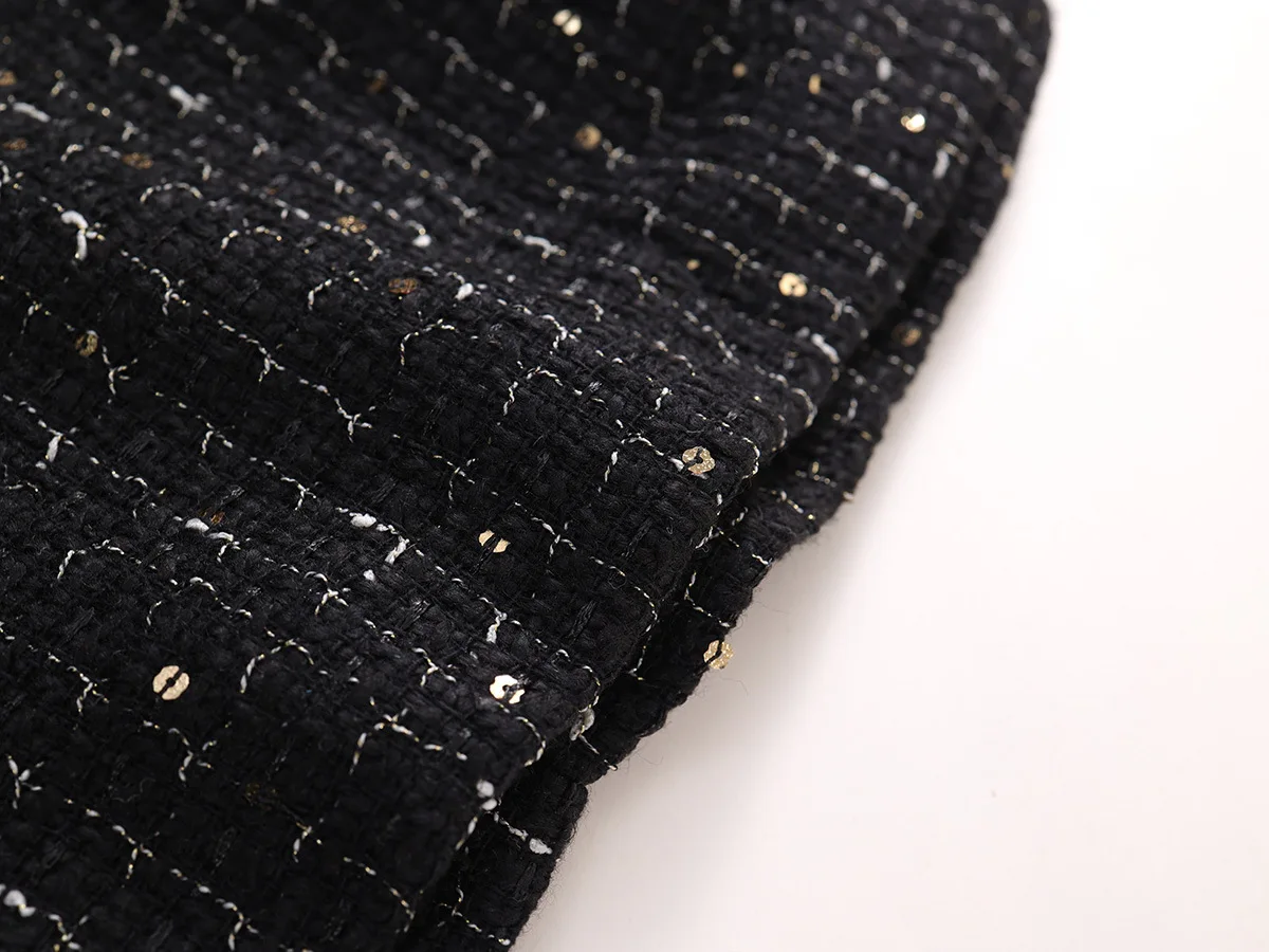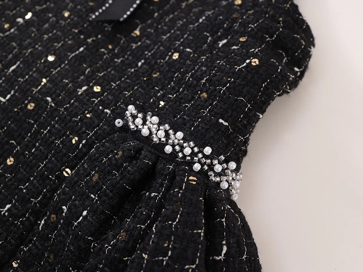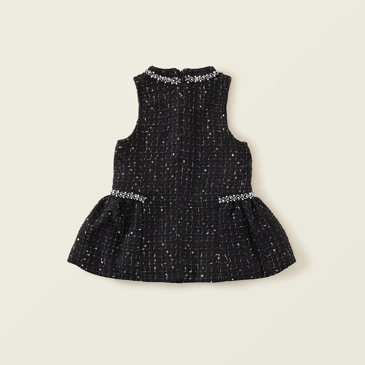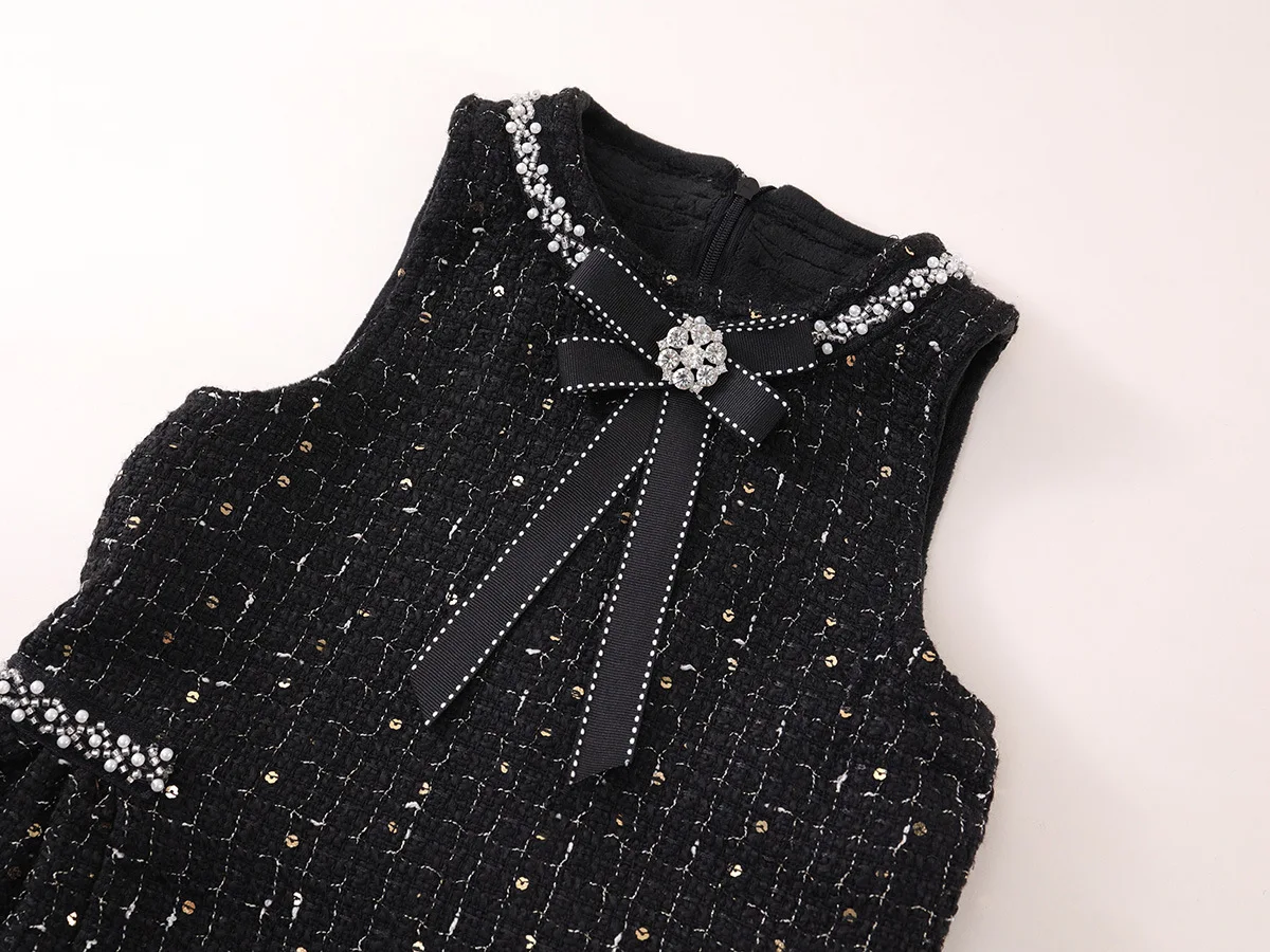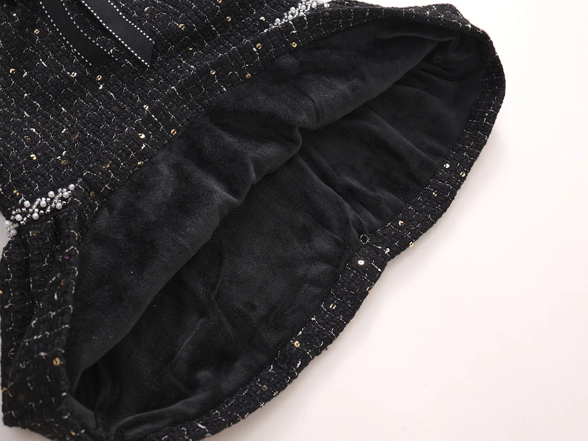 Autumn Girls' Coarse Tweed Sleeveless Vest Dress Winter Baby Black Elegant Rhinestone Hot Stamping Dress Kids Dresses for Girls