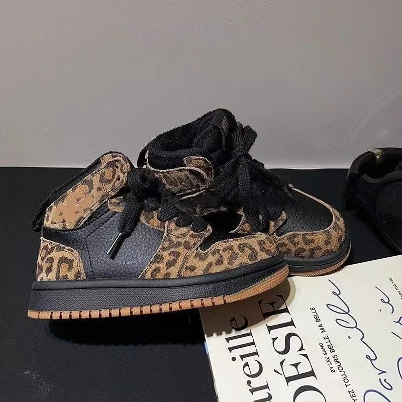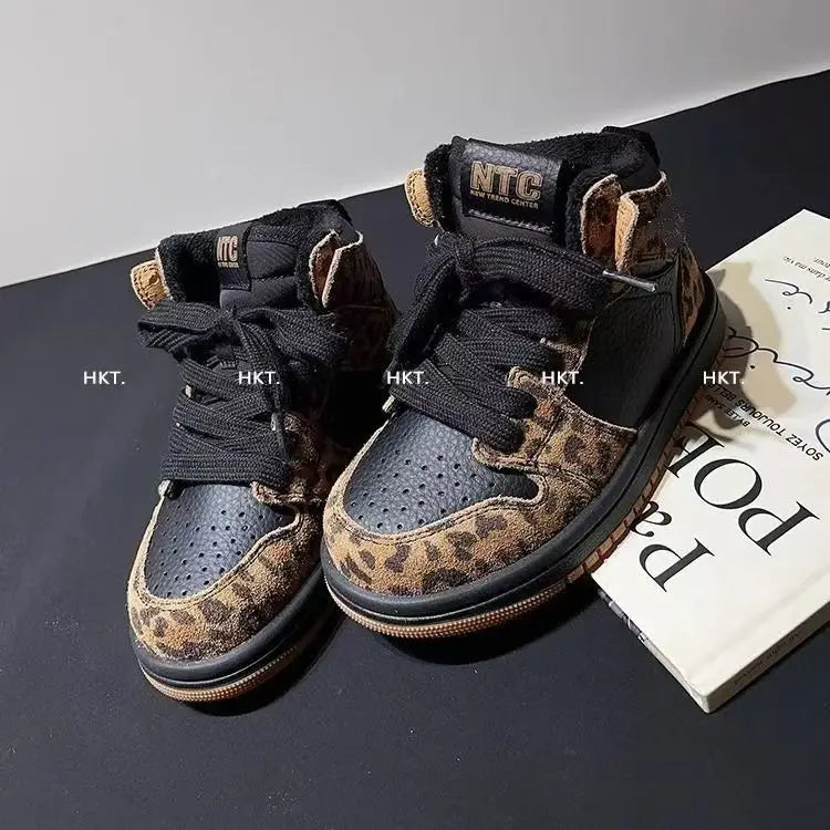 Boys and Girls High Top Board Shoes 2025 Autumn and Winter Children's Fleece Casual Sports Shoes, Girls' Fashionable Flat Shoes
