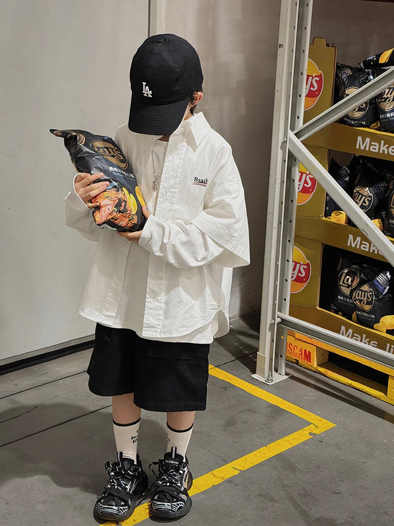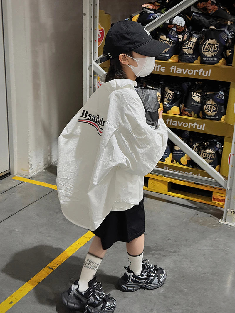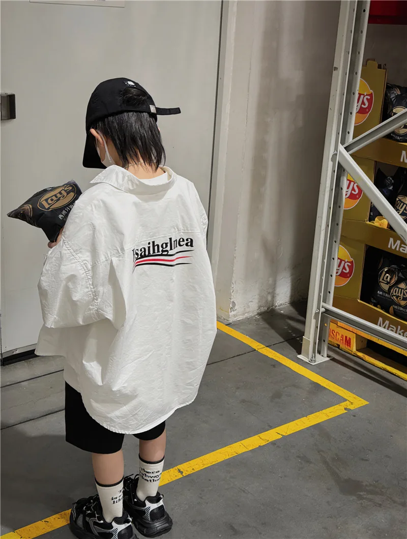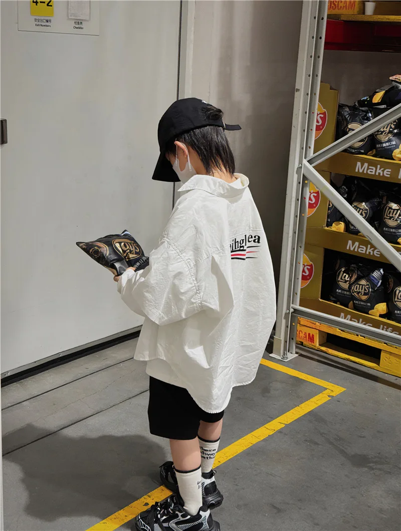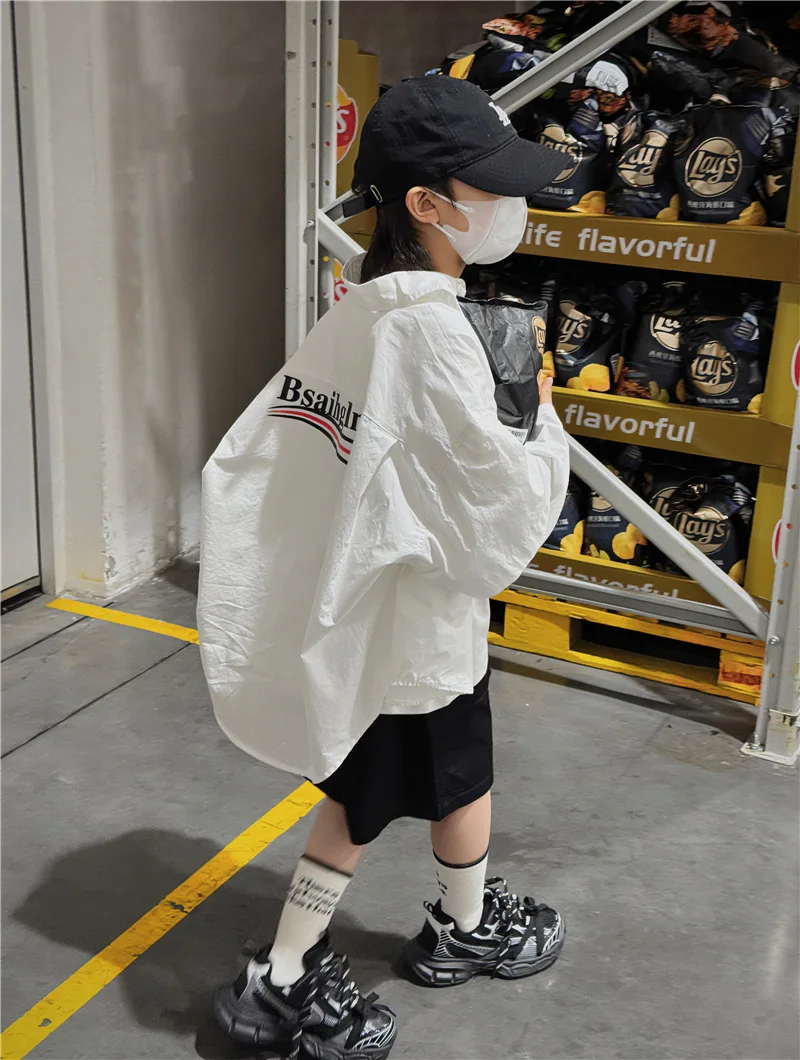 Chic Unisex Oversized White Shirt Children's Outfit Long Sleeve Shirt For Boys Girls Loose Kid's Sun Protection Clothing 3-12T