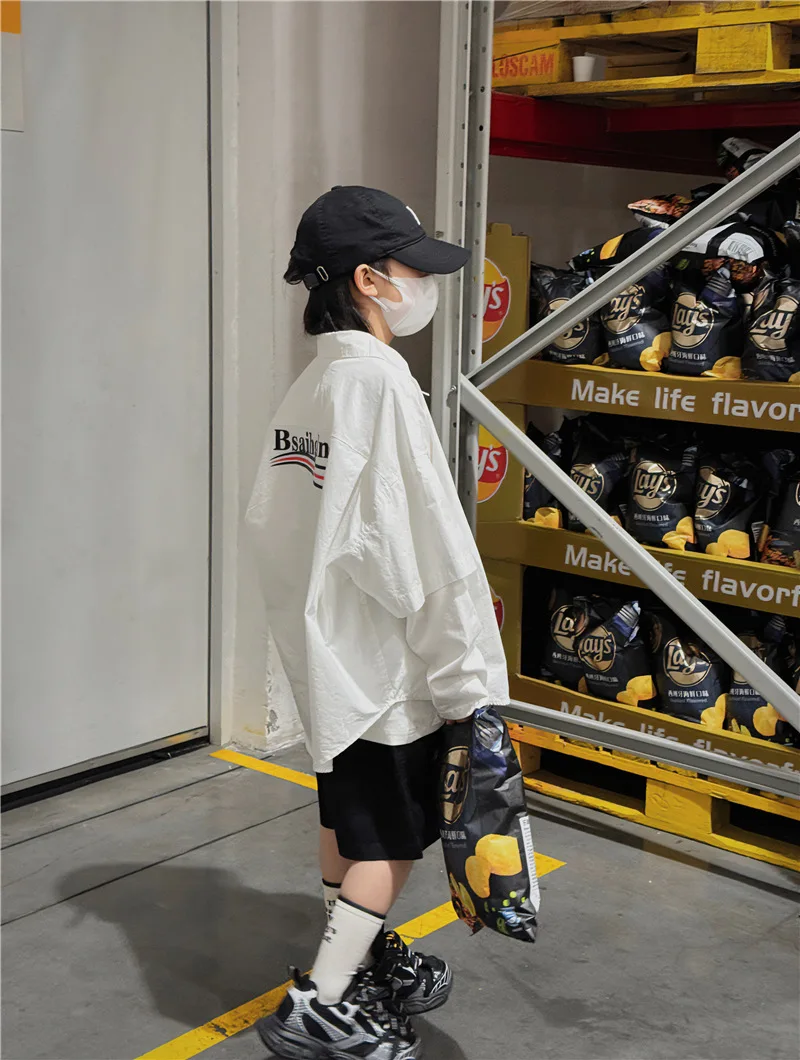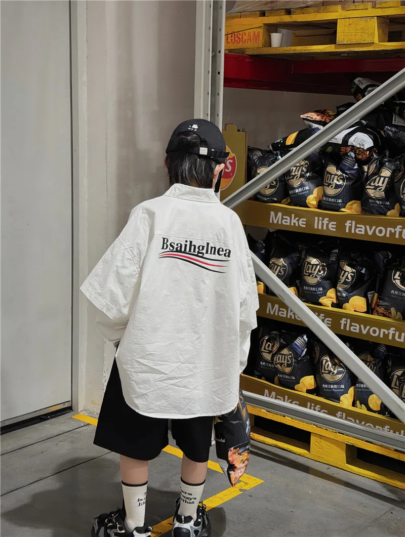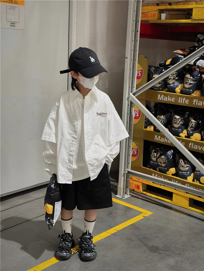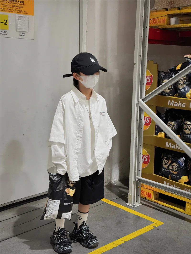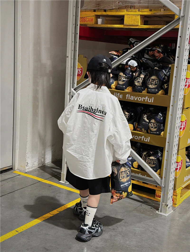 Chic Unisex Oversized White Shirt Children's Outfit Long Sleeve Shirt For Boys Girls Loose Kid's Sun Protection Clothing 3-12T