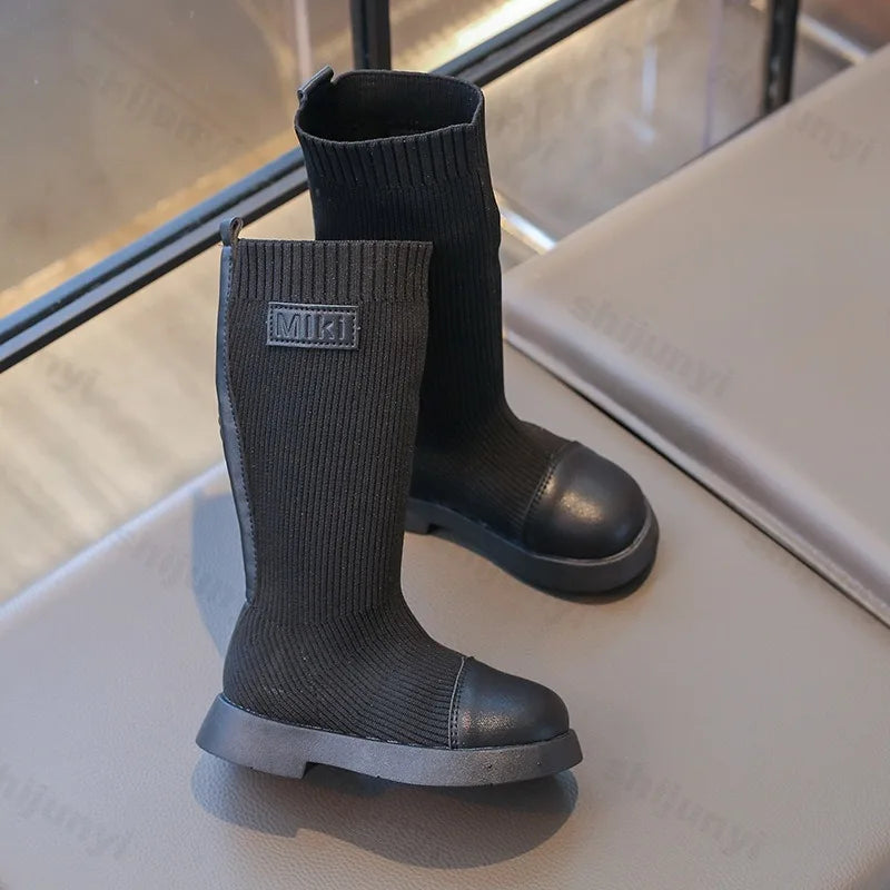 Children Knee Length Boots New 2025 Autumn Student Girls Princess Boots Kids Comfortable Non Slip Solid Color Knitted Long Boots