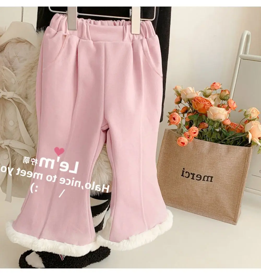Girls' 2023 Winter Suit with Plush and Thickened Girls' Coat Baby Top and Two-piece Clothing Set Kids Boutique Clothes New