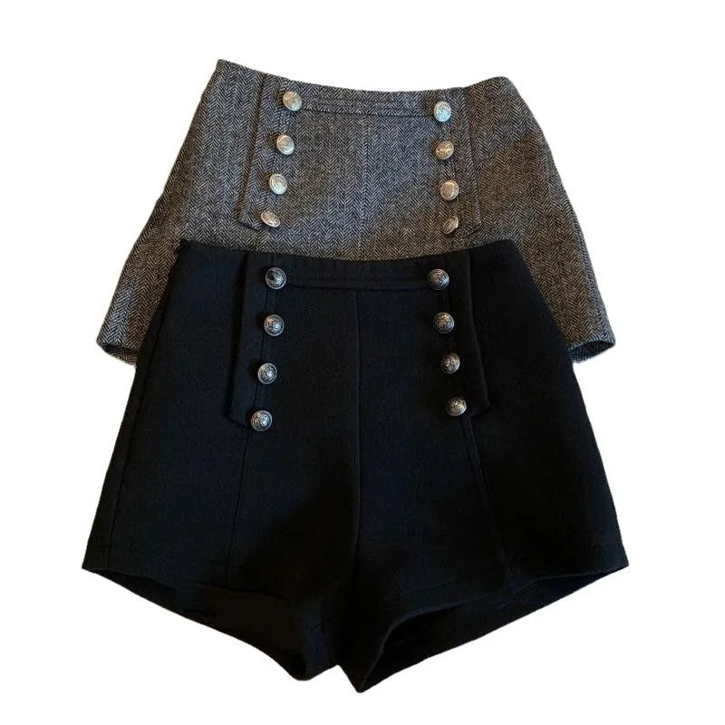 Upgrade your fall and winter wardrobe with our Girls Autumn and Winter Herringbone Woolen Shorts. Crafted with a double breasted button design, our high-waisted shorts add a touch of retro British style to any outfit. Versatile and stylish, these shorts are the perfect addition to your cold-weather fashion collection.