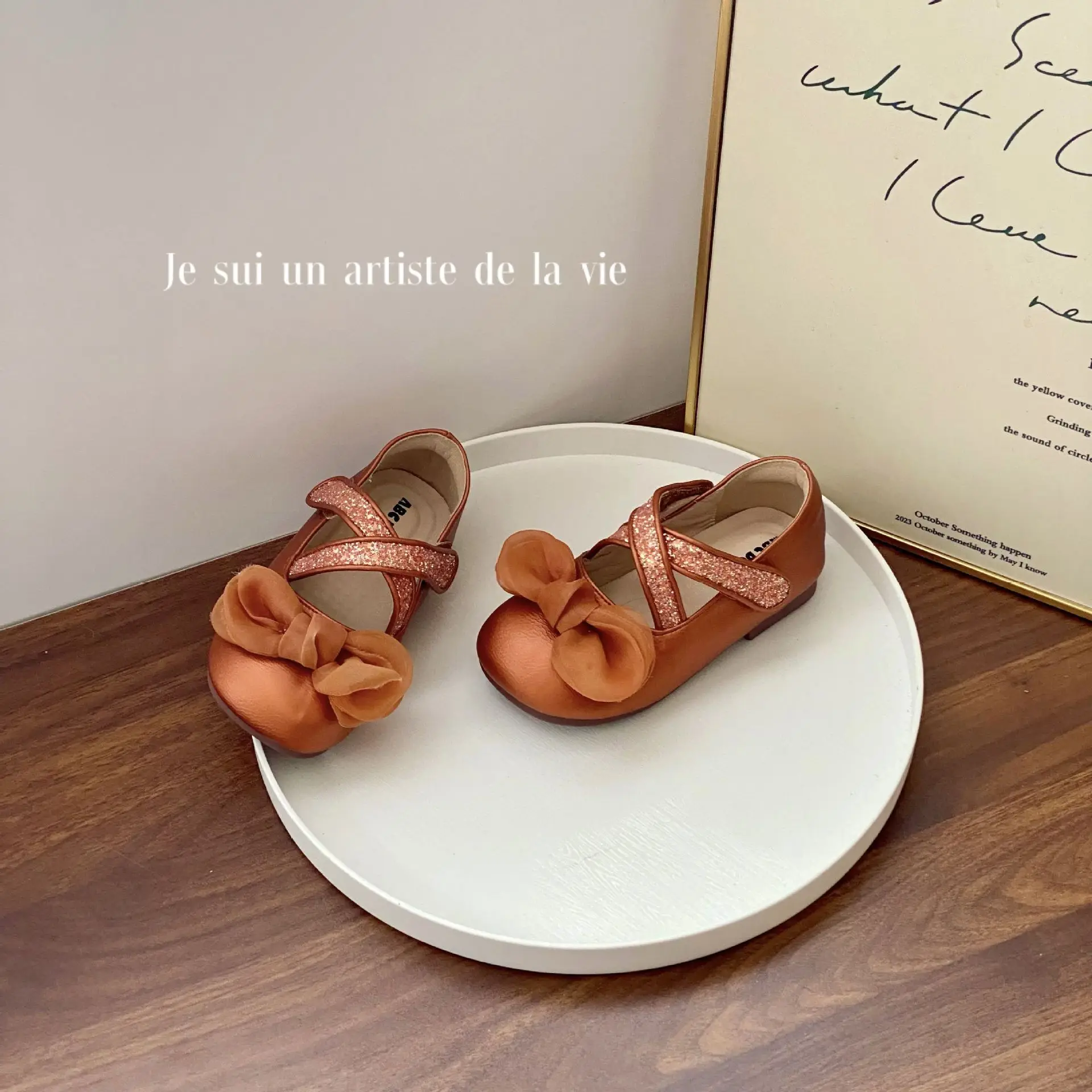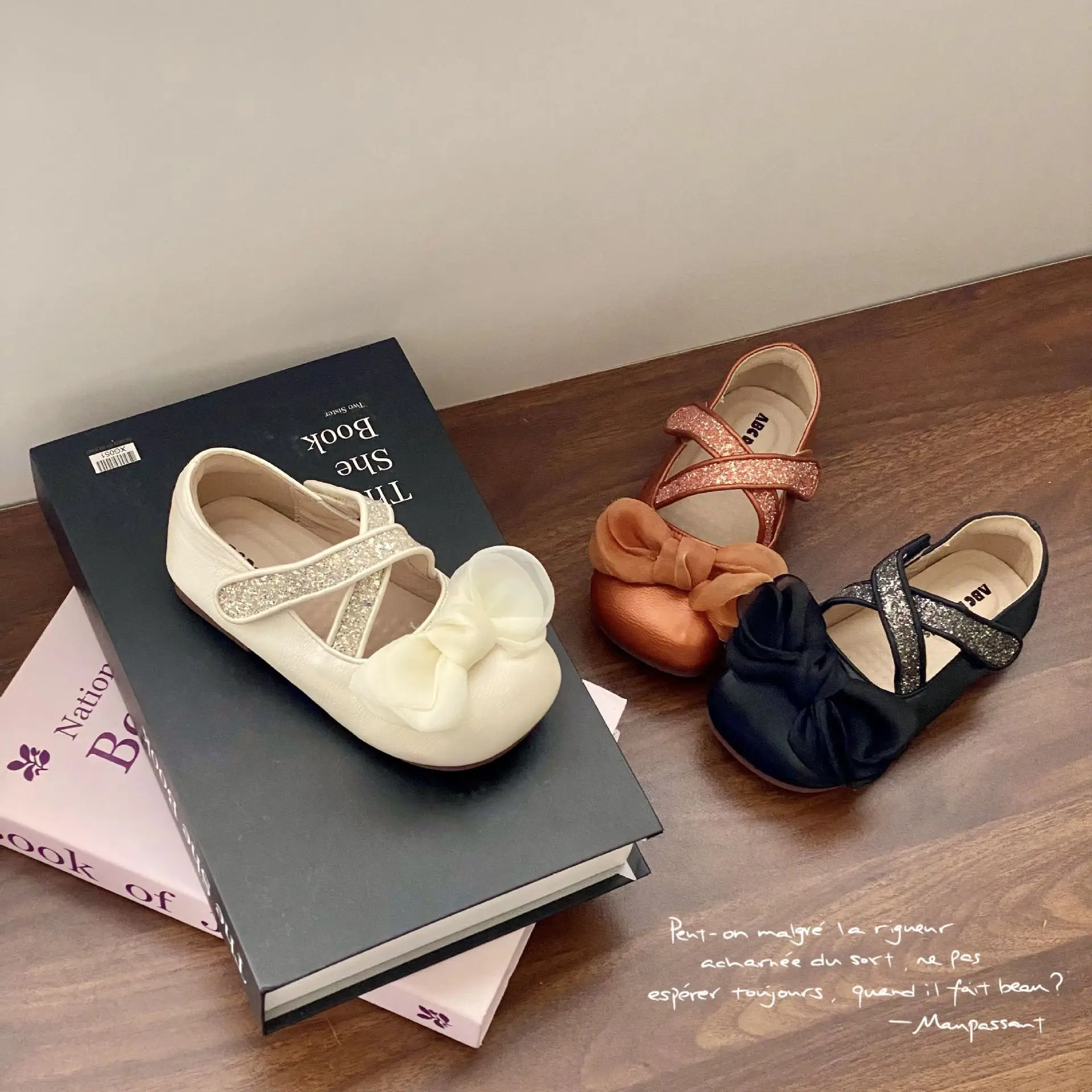 Girls' Princess Shoes Autumn New Children Fashion Bow Knot Party Dress Leather Shoes Soft Sole Comfortable Non Slip Casual Flats