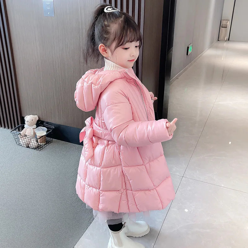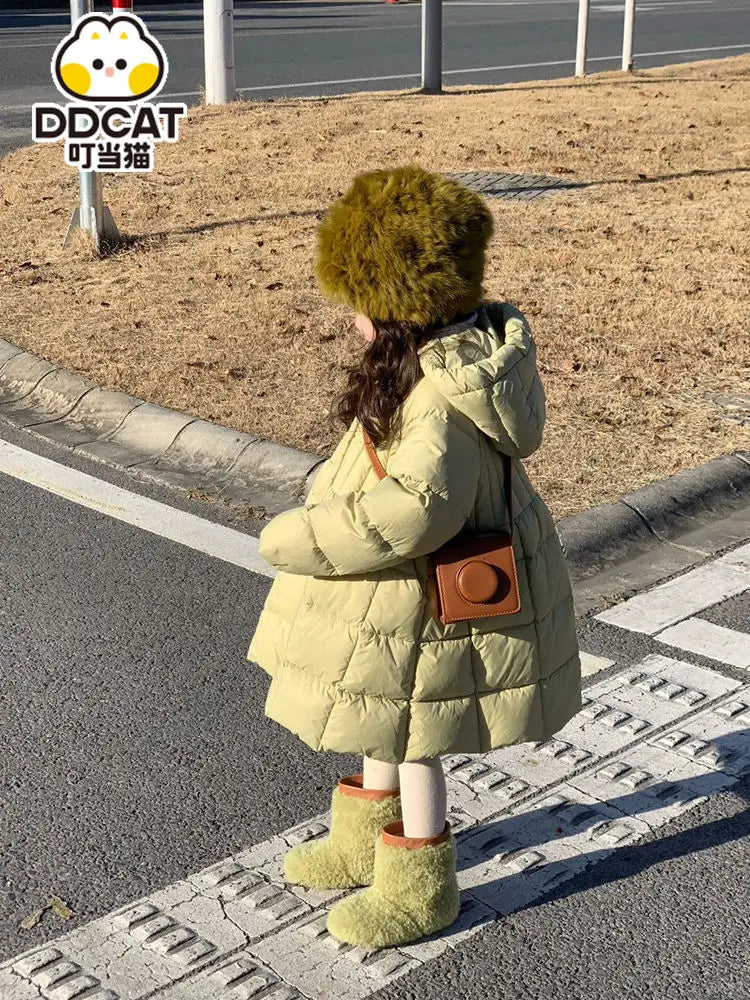 New Winter Jacket Girls Parkas Green Hooded Children Thicken Warm Coat Cotton Padded Clothes Snow Wear For Kids