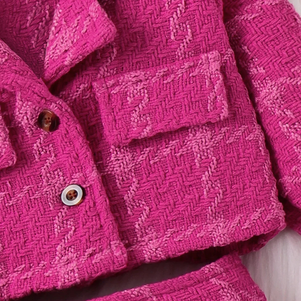 The solid color and classic grid houndstooth pattern give a timeless boutique look, while the soft, breathable fabric ensures all-day comfort. Complete with a matching hat, your toddler will look picture-perfect wherever she goes.