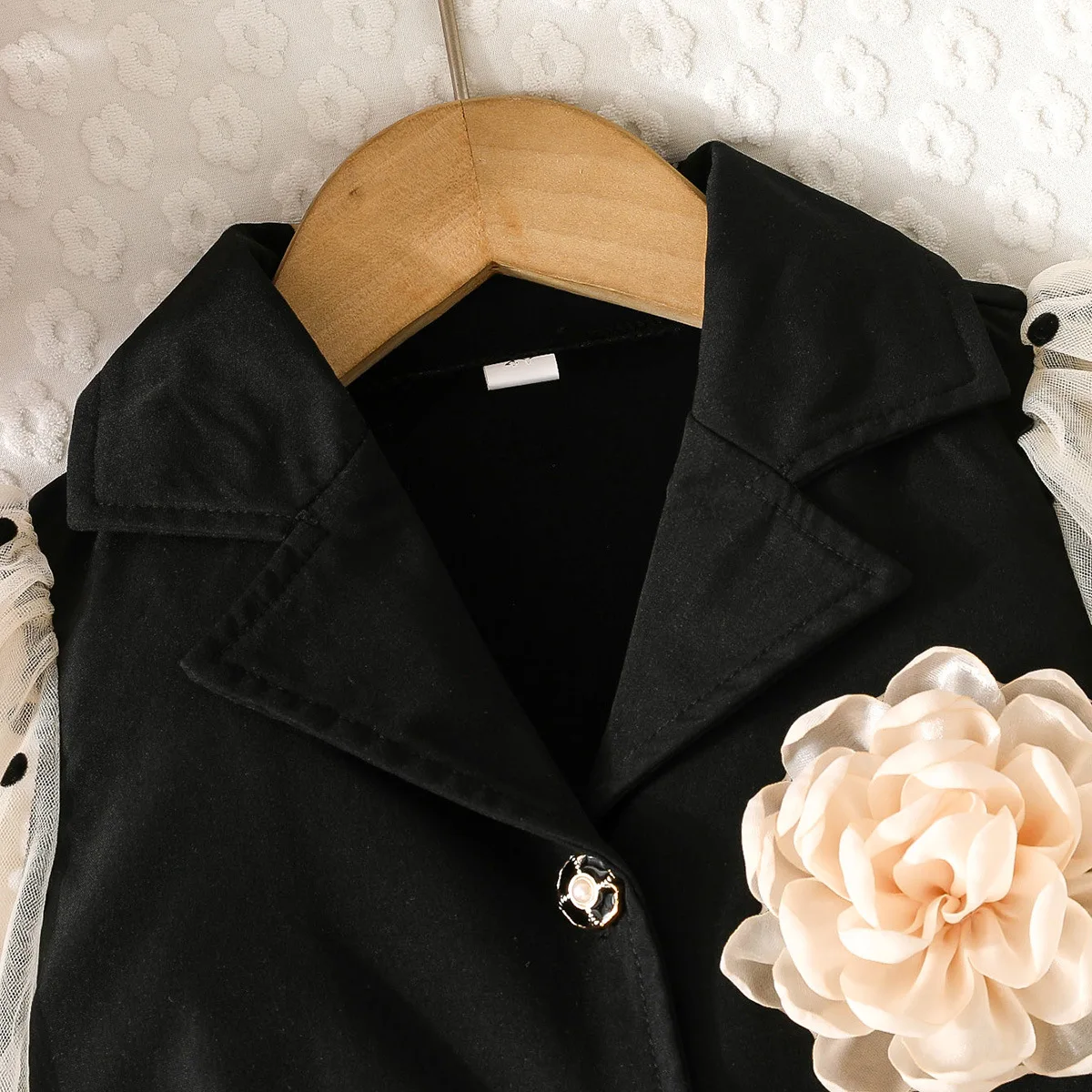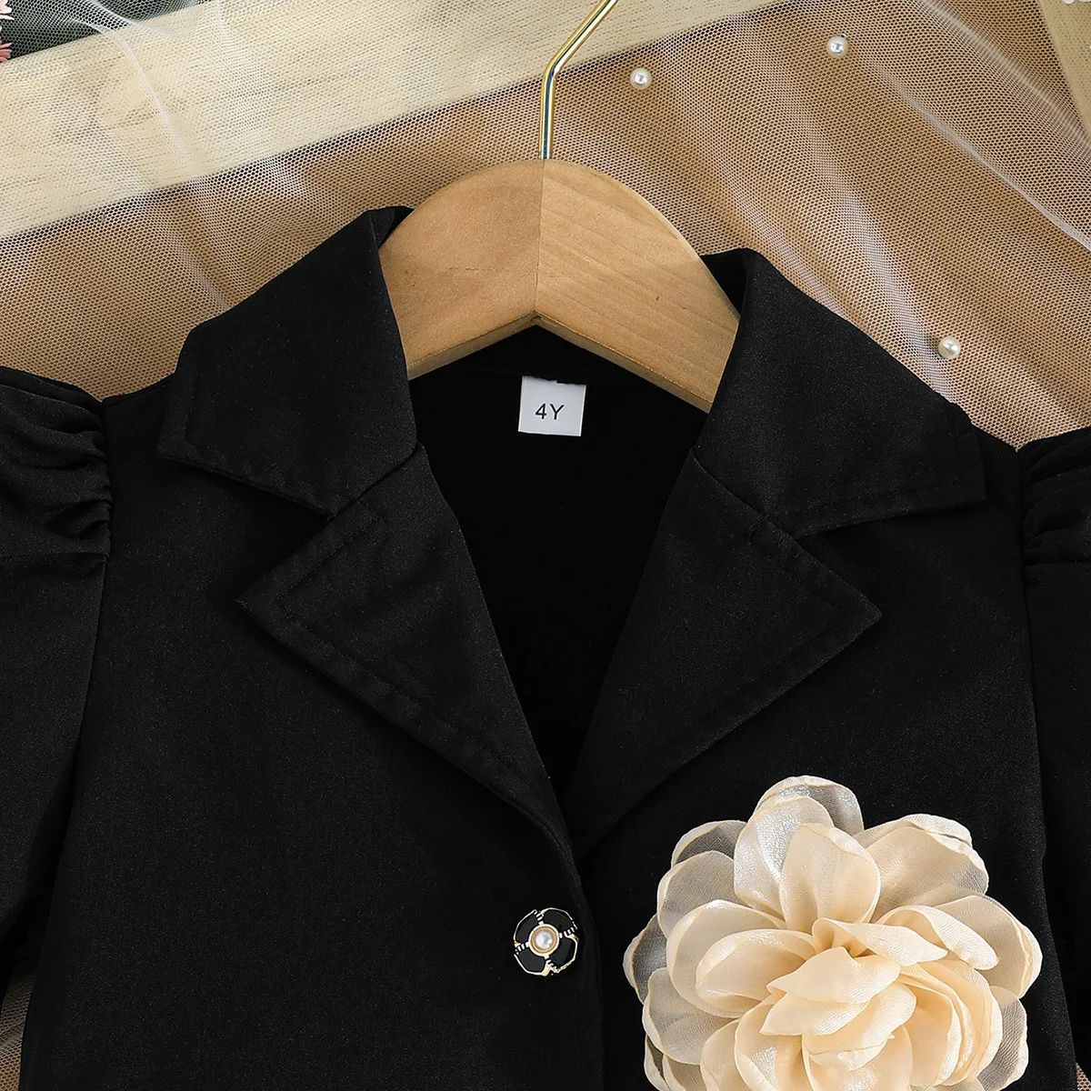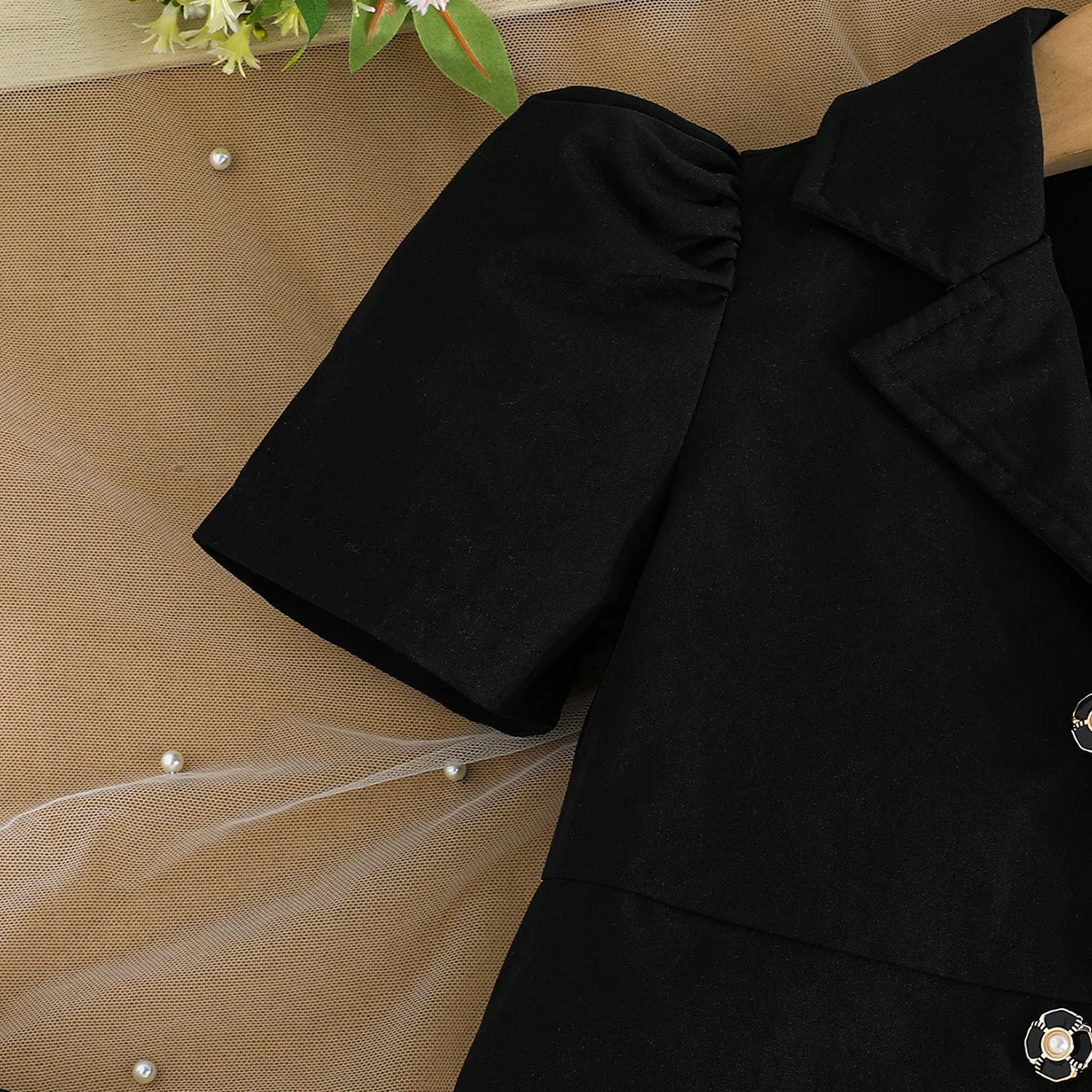 Children Blazer Dresses For Girls Short Sleeve Black Dress Front Applique Flower Fashion Dress For Kids Formal Clothes