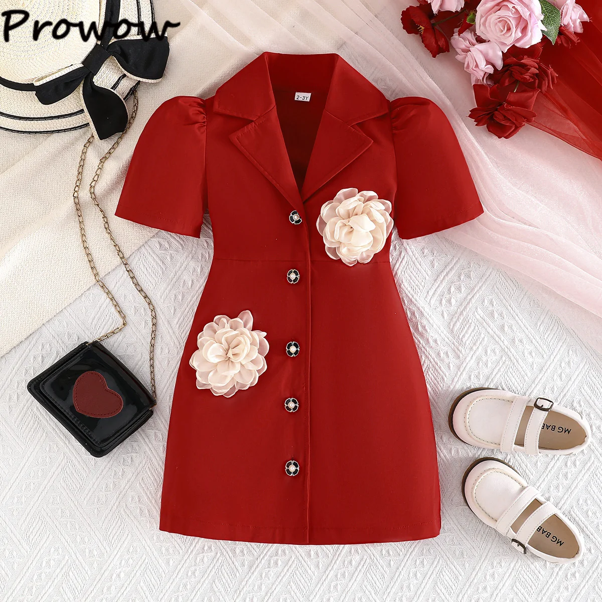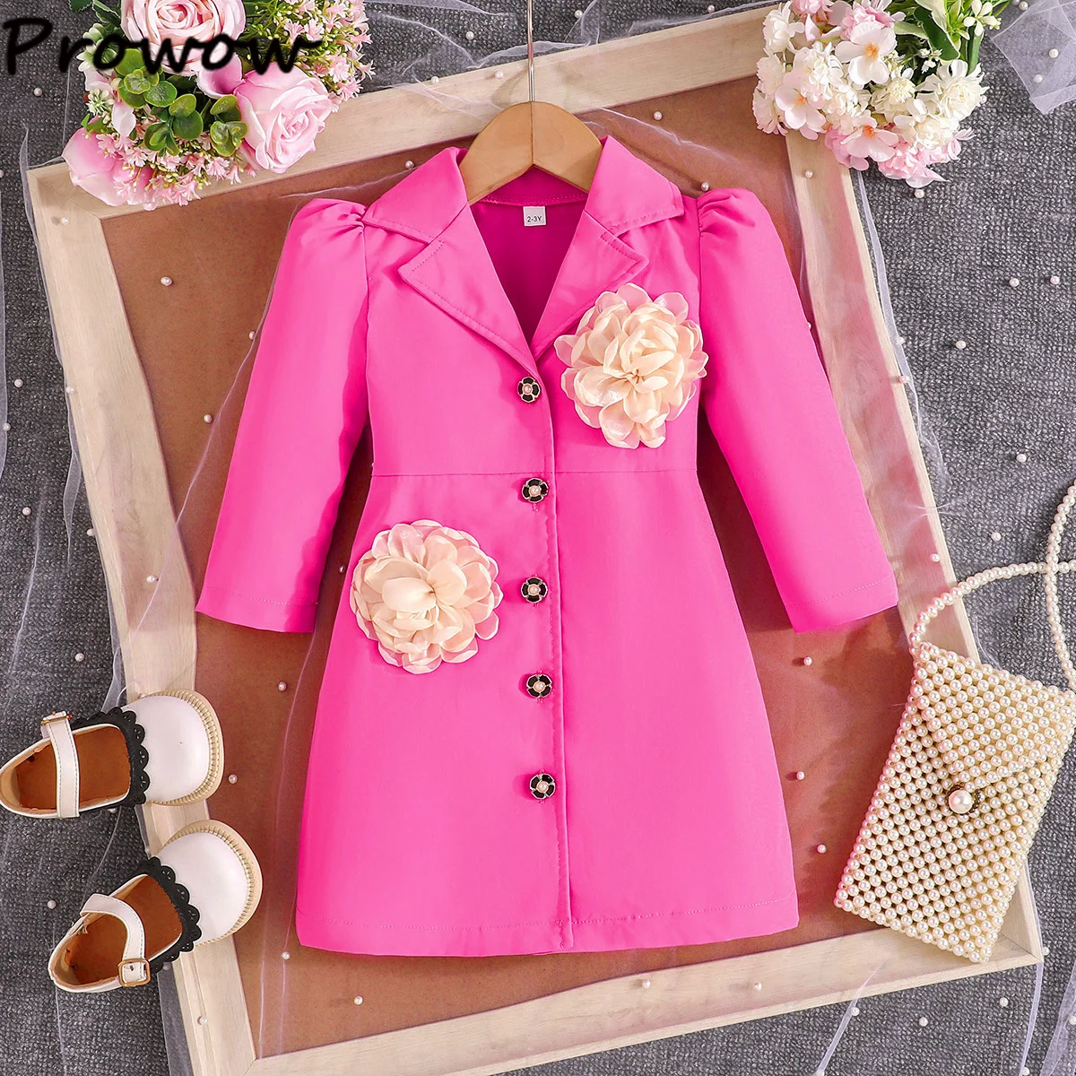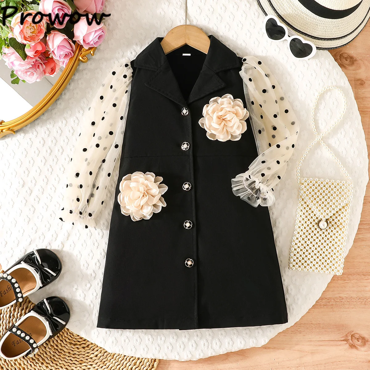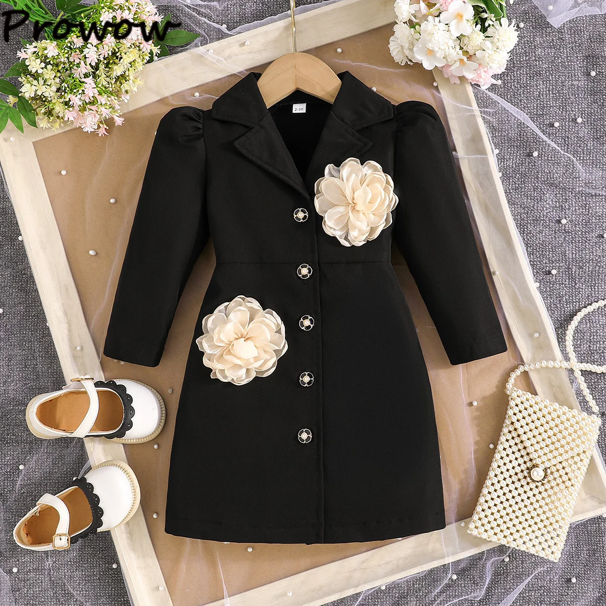 Children Blazer Dresses For Girls Short Sleeve Black Dress Front Applique Flower Fashion Dress For Kids Formal Clothes
