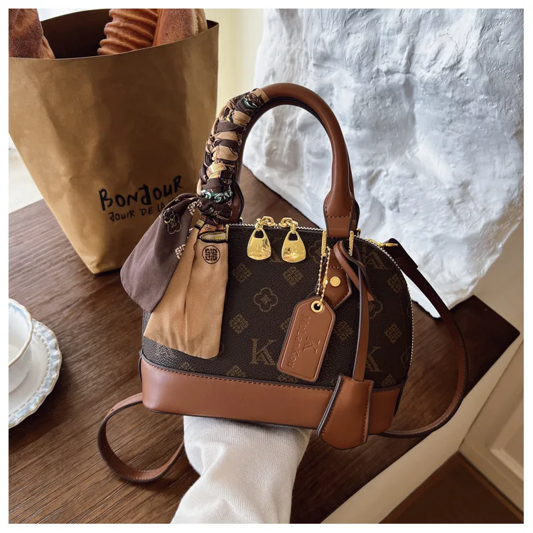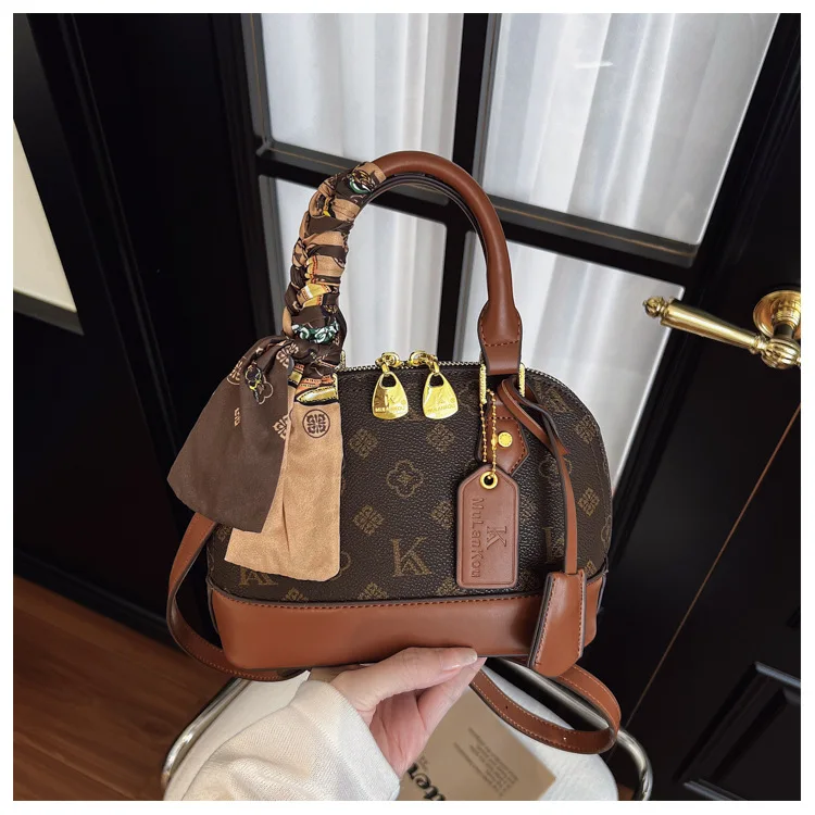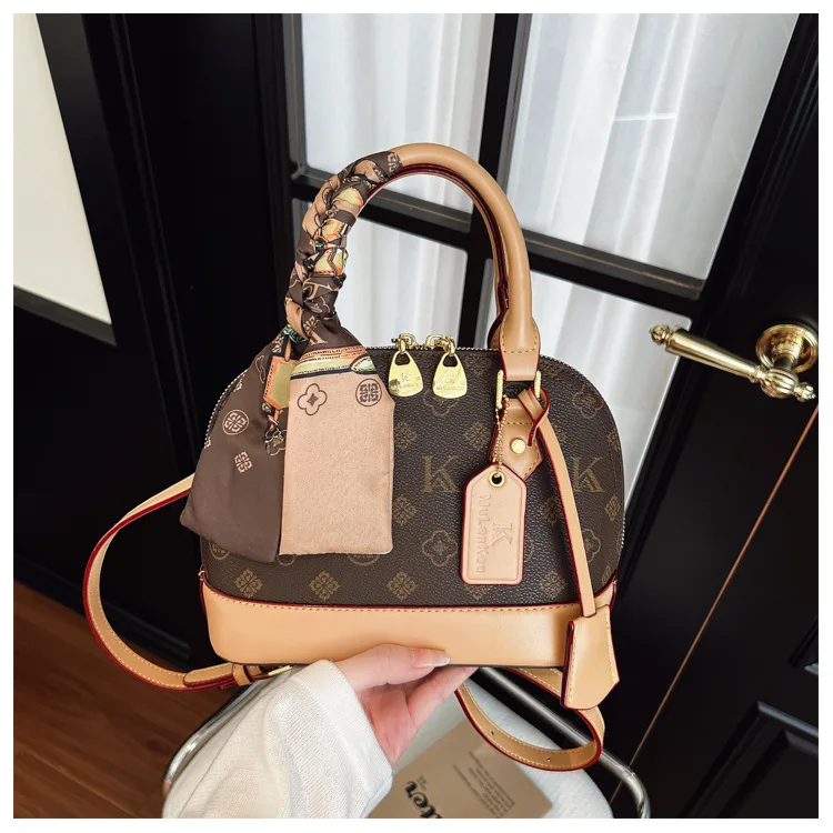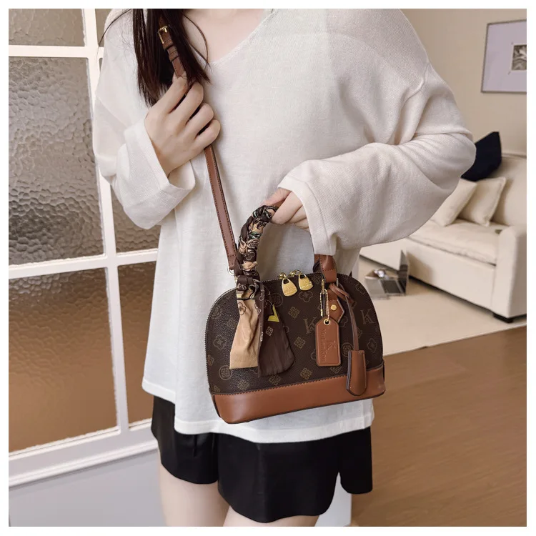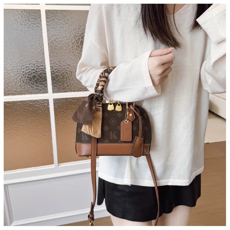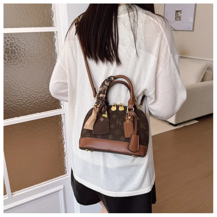 Retro Shell Handbag New Summer Print Versatile Single Shoulder Crossbody Underarm Bag Urban Minimalist Style PU Material
