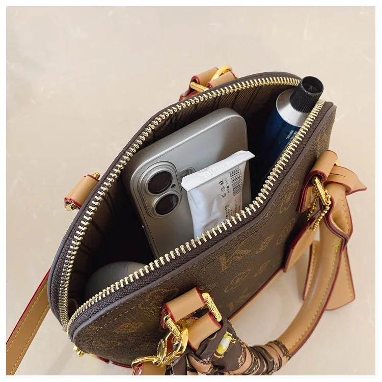 This vintage shell bag exudes a urban minimalist charm, perfect for those who appreciate simplicity and elegance.