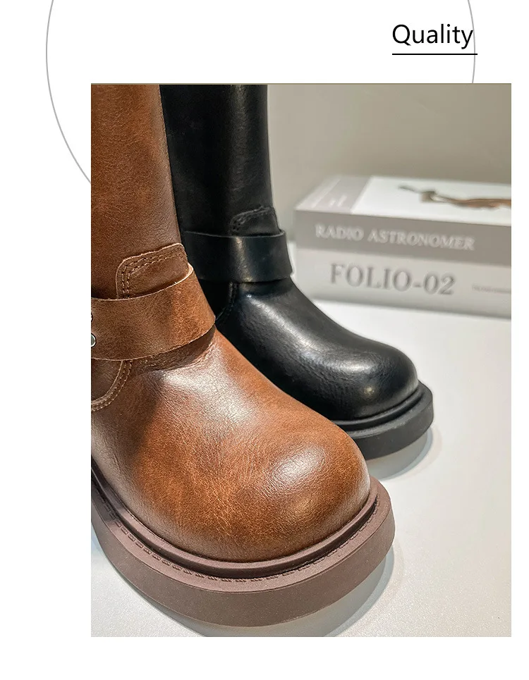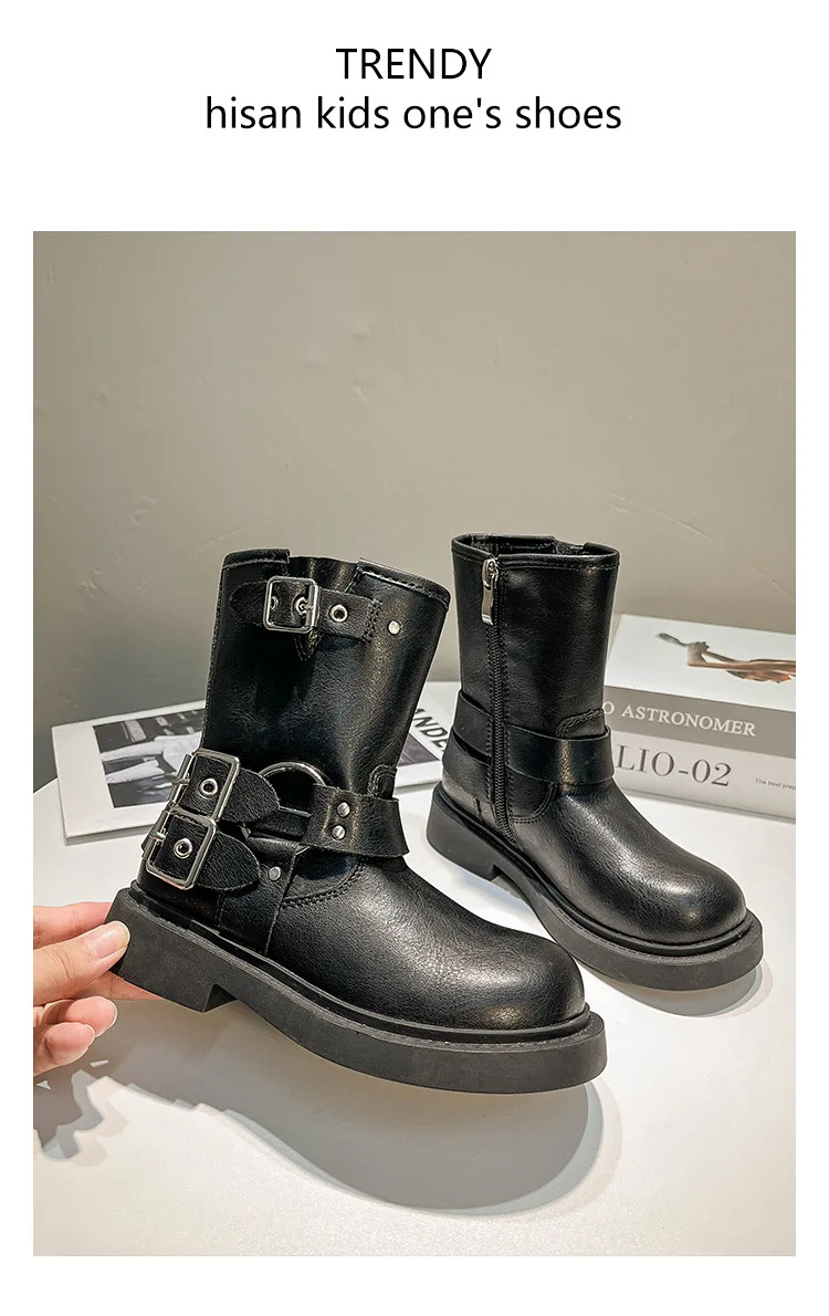Round Toe Platform Kid Boot Autumn/Winter Leather Boot Fashion Girl Knight Boot Mid Size Ankle Boot Kid Shoe 부츠