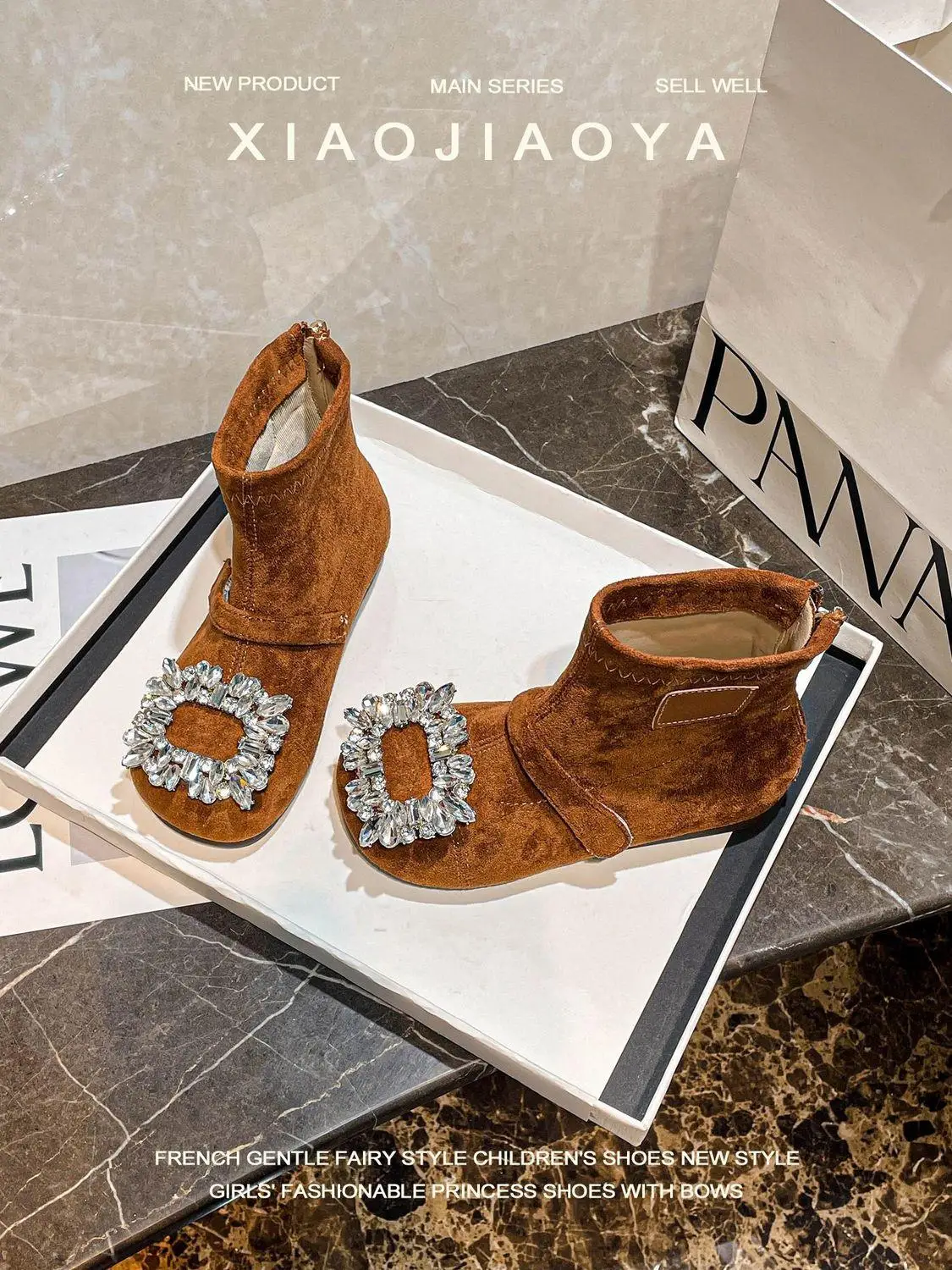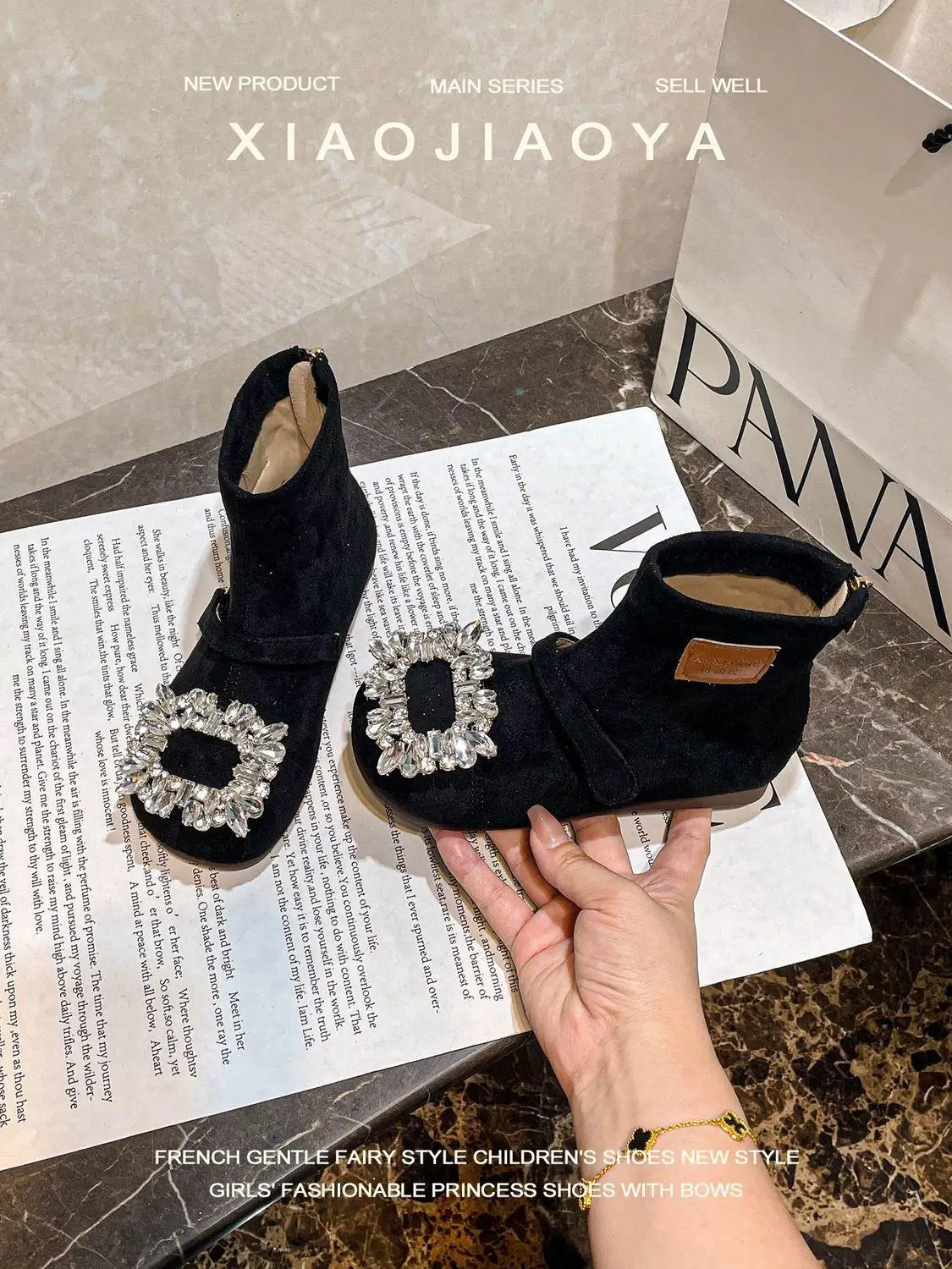 Toddler Girls Shiny Rhinestone Leather Boots Winter Kids Thermal Boots Soft Sole Chic Princess Girls Party Boots